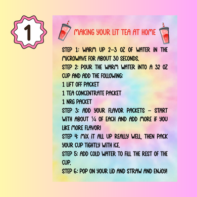 Custom Instructions Cards for Loaded Tea • 3 in × 4 in • Premium 110 lb Cardstock • 3 Designs • Sets of 24 / 48 / 96