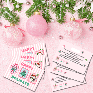 Coquette Happy Holidays Thank You Cards | Holiday Packaging Inserts for Small Businesses