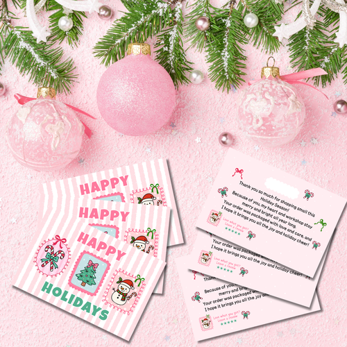 Coquette Happy Holidays Thank You Cards | Holiday Packaging Inserts for Small Businesses
