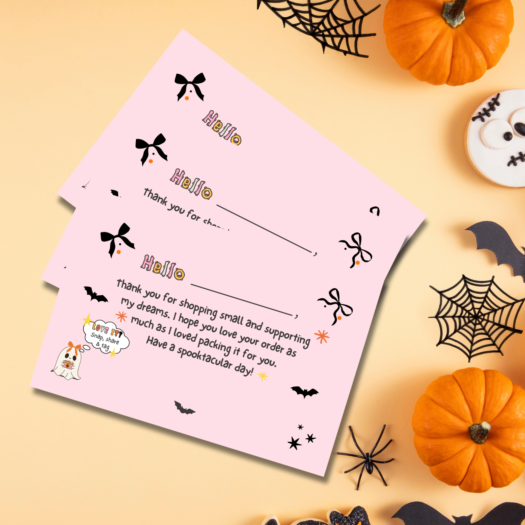 Say hello, boo! to the cutest way to thank your customers this spooky season. These Halloween thank you cards are designed with small business owners in mind. Whether you run an online shop, a market booth, or a brick-and-mortar store, these cards instantly make your packaging feel more personal and festive.